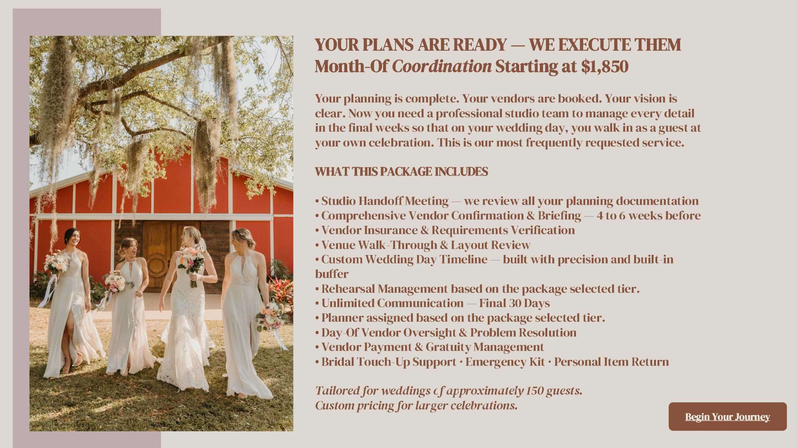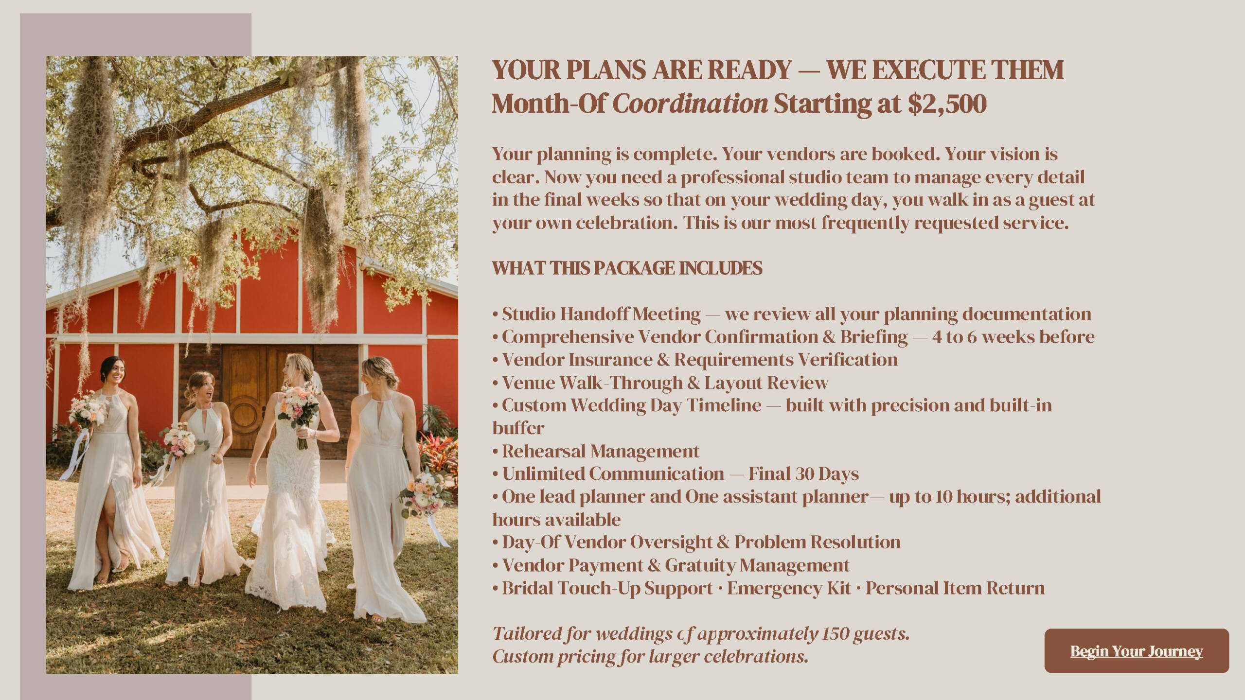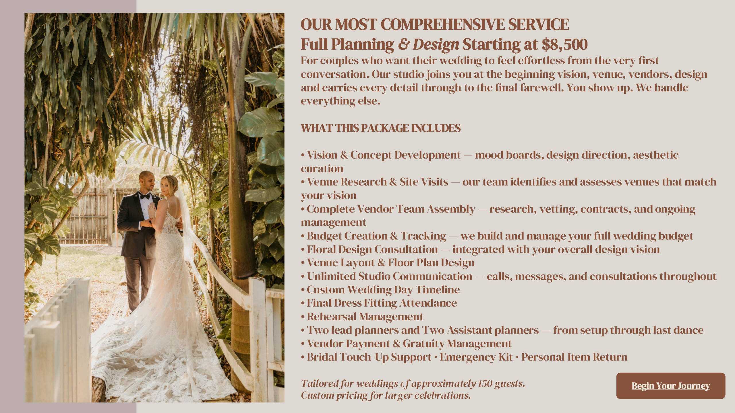 "The ABC team flawlessly executed our 250+ guest Miami wedding, handling everything from vendor coordination despite us being out of state. Their organization, kindness, and professionalism were crucial — we are so grateful."